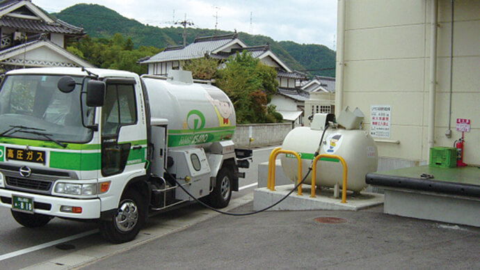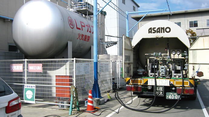 従来は定期的にLPガス容器そのものを交換していましたが、バルク供給システムを導入してからは安全性もより高くなり、また流通の合理化も一段とアップすることになりました。